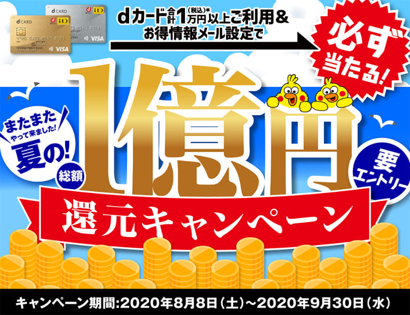 d払いとdカード、マイナポイント登録で500円プラス。合計5,500円
