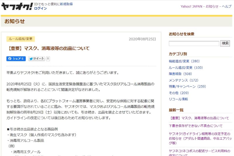 メルカリ、転売規制解除後もマスク・消毒液など出品禁止