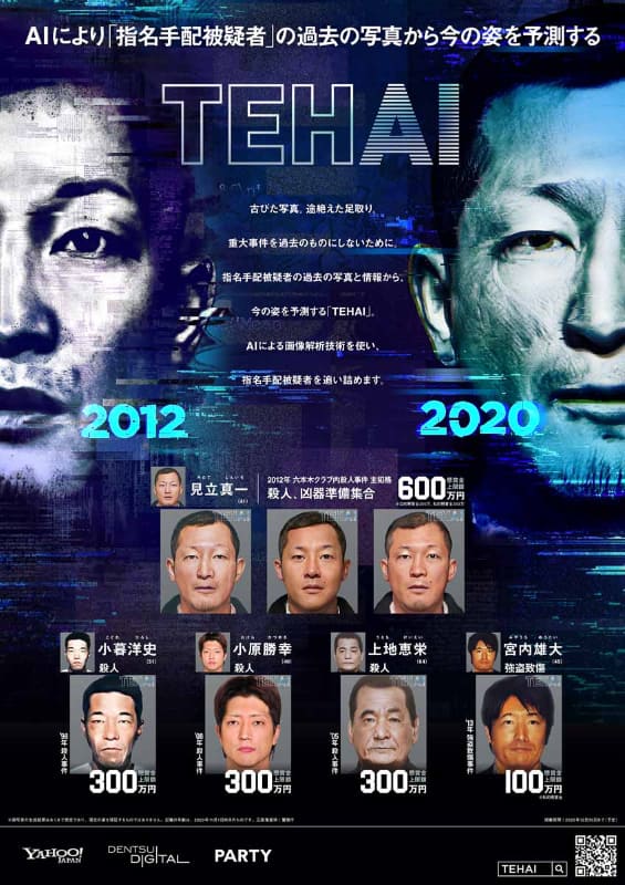 指名手配被疑者の「今の姿」をAIで予測。ヤフーら3社がTEHAIプロジェクト