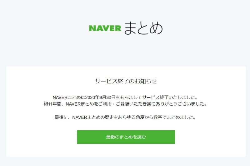 NAVERまとめ、サービス終了。11年間の総PVは1718億