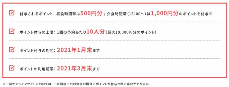 Go to Eatってなに? オンライン予約でポイント 25%プラスの食事券(5/8)