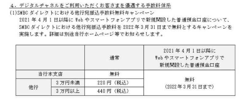 三井住友銀行、他行宛のATM振込手数料を108円値上げ