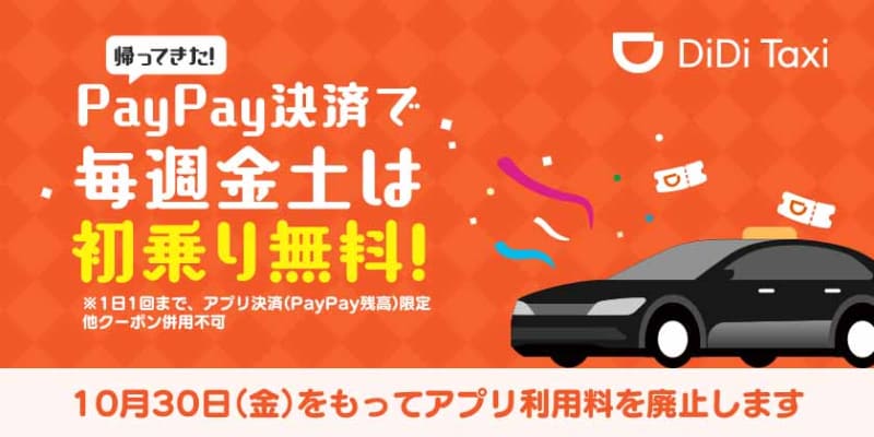 DiDi、PayPay決済で金・土曜初乗り無料を12月まで延長
