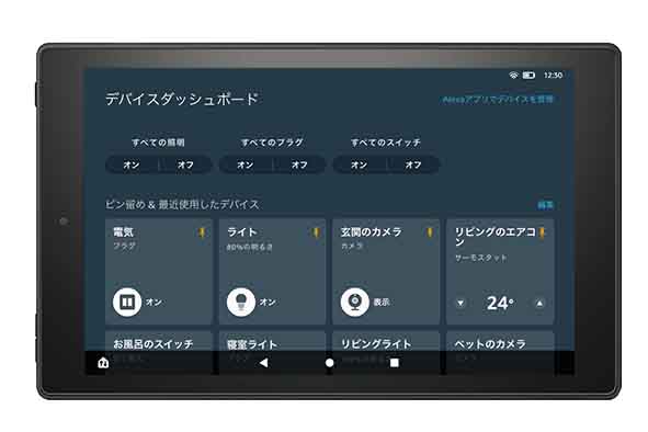 Fireタブレットの画面でスマートホーム操作「デバイスダッシュボード」