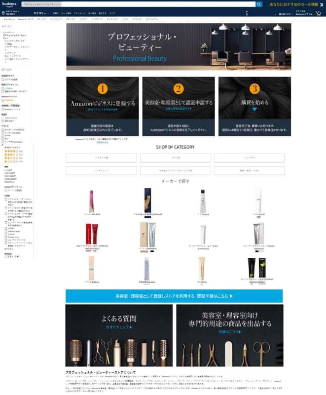 理容室・美容室用のアマゾン。「プロフェッショナル・ビューティーストア」開設