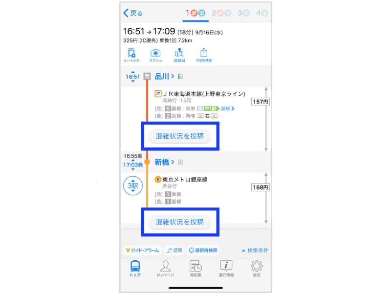 • Yahoo!乗換案内、「混雑予報」を前後のダイヤが確認できる画面に表示