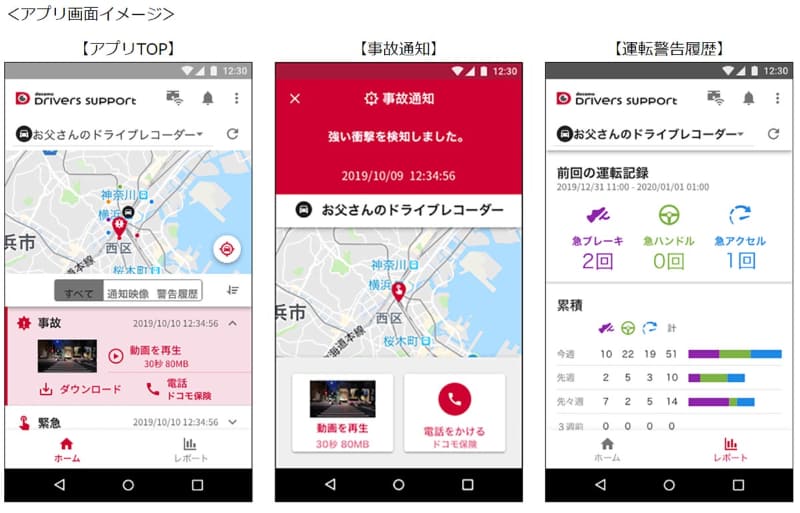 ドコモ、通信型ドラレコ「ドライバーズサポート」。映像をクラウド保存