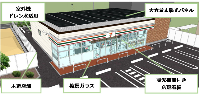 セブン、福岡に省エネ・創エネ・蓄エネ設備を備えた木造店舗