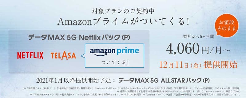 • au、対象5Gプランで「Amazonプライム」1年無料