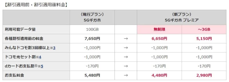 ドコモ新料金プラン 「5Gギガホ プレミア」はデータ無制限で6,650円(3/5)