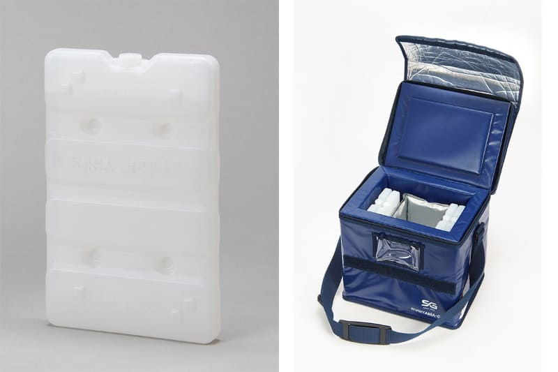 新型コロナワクチン用保冷バッグにシャープ適温保冷剤。スギヤマゲン