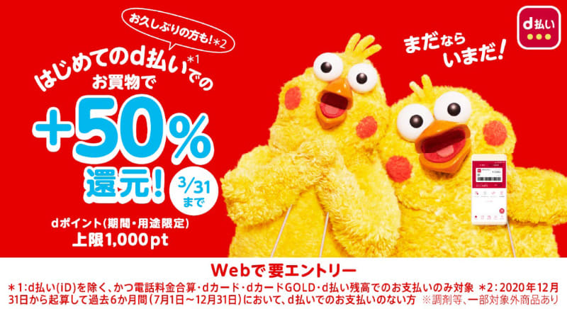 d払い、3月は「ユニクロ」で20%還元