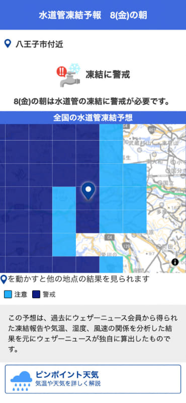 ウェザーニュース「路面凍結予報」。凍結リスクを4ランクで表示