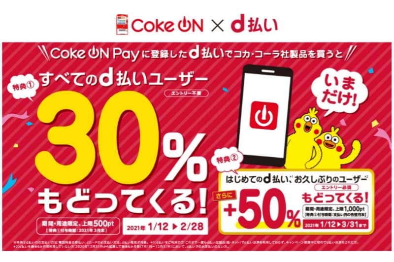 コカ・コーラ、「Coke ON」が「d払い」「メルペイ」に対応