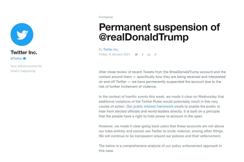 Twitter、大統領就任式を前に7万以上のアカウントを停止