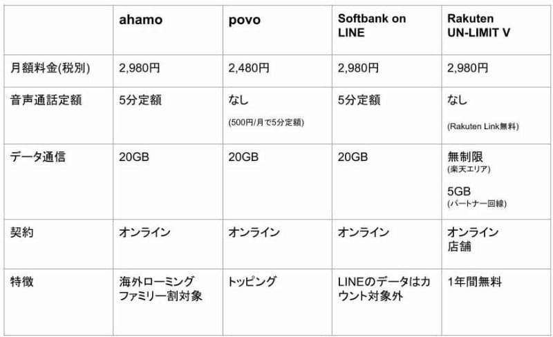 ahamo・povo・LINEMOスタート。20GB/2980円時代の料金プランの選び方