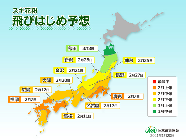 LINEヤフー「花粉情報2024」 飛散開始は2月上旬から