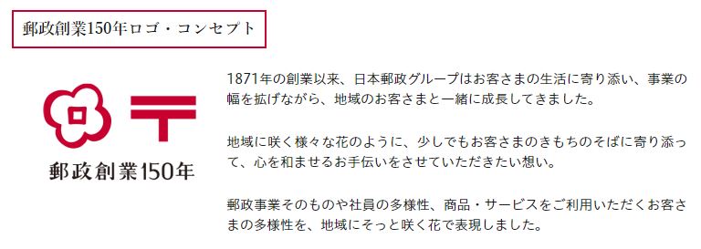 郵政、創業150年ロゴ。創業は明治4年