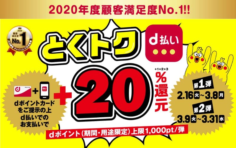 d払い、3月は「ユニクロ」で20%還元