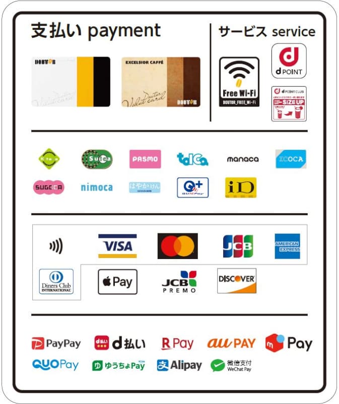 ドトールコーヒー、「QUICPay」と「iD」に対応。9月2日から