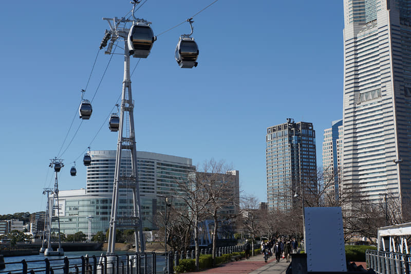 横浜 みなとみらいのロープウェイに乗った。空中散歩で街を一望