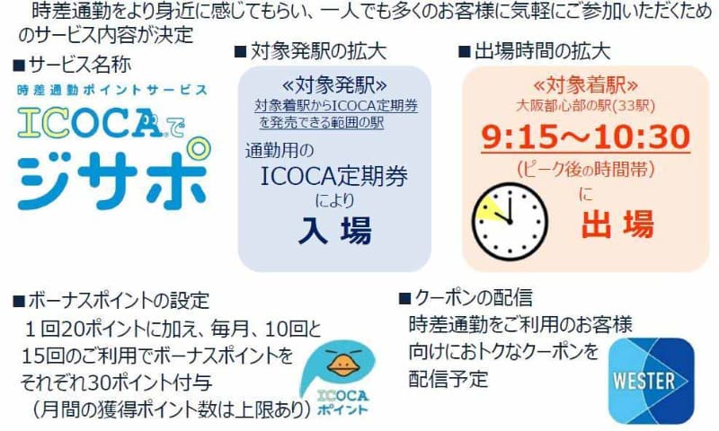 JR西「ICOCAでジサポ」'23年3月まで継続。時差通勤でポイント