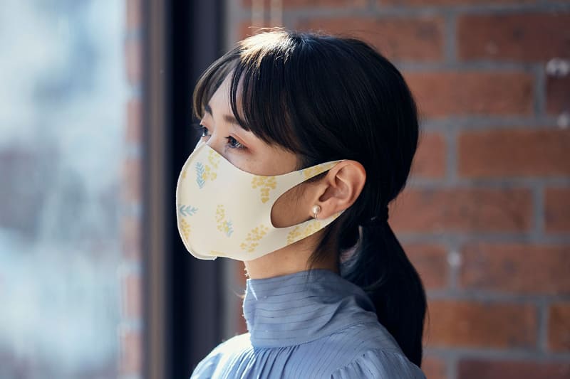キングジム「ひもなしマスク」。顔にテープで貼付
