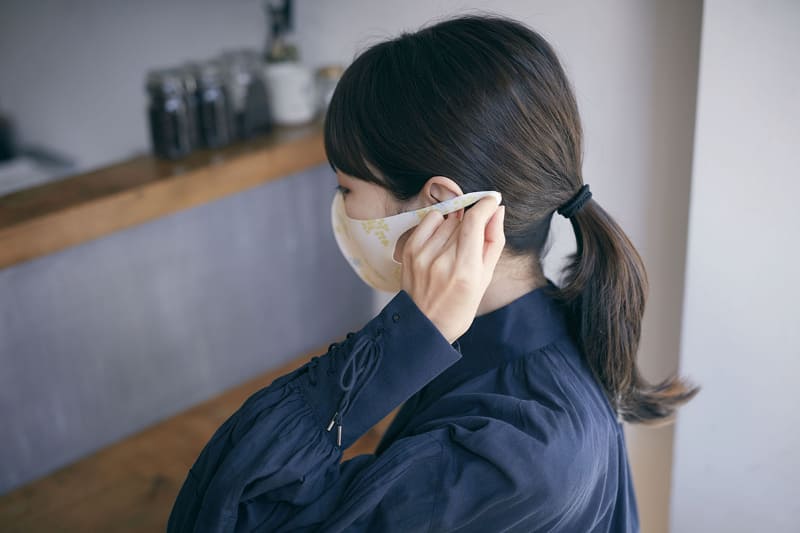 キングジム「ひもなしマスク」。顔にテープで貼付