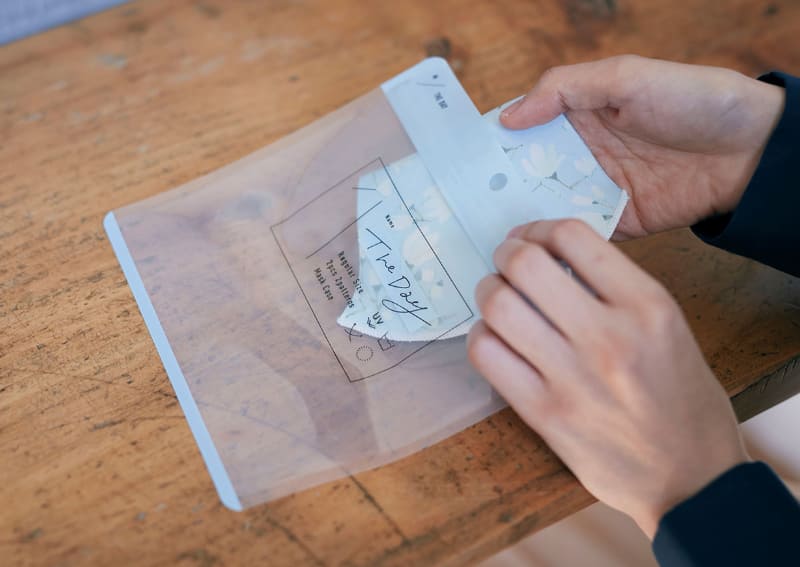 キングジム「ひもなしマスク」。顔にテープで貼付