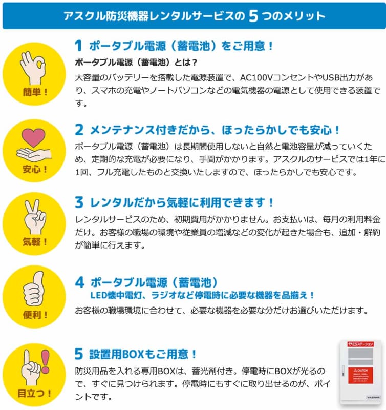 アスクル、防災機器を借りて2年で貰える月額レンタル。バッテリなど1点から(3/6)