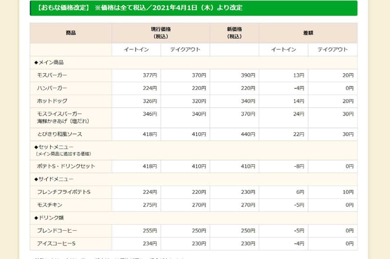 税込表記ルール変更で飲食店が価格改定。モス・はなまる・丸亀