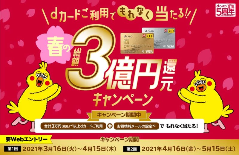 dカード、500名に10万ポイントが当たる「3億円キャンペーン」