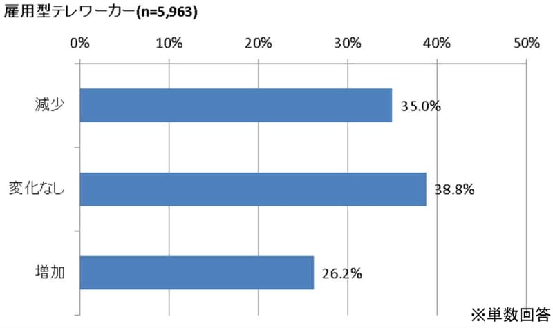 テレワーカー倍増、6割が満足。労働時間は増えた人より減った人が多い(8/9)