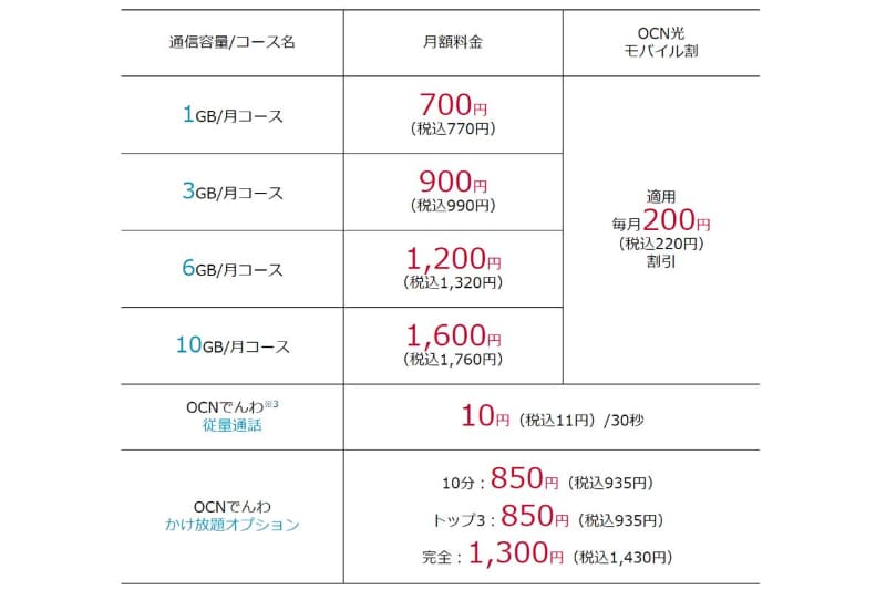 【詳細更新】OCN モバイル ONE、1GB770円~の新料金プランを発表――端末1円のセールも開催