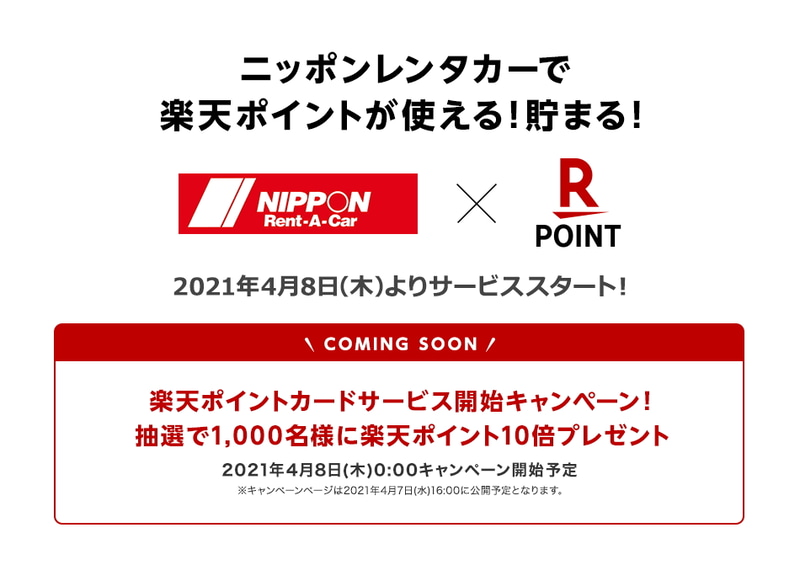 ニッポンレンタカー、楽天ポイントに対応。4月から