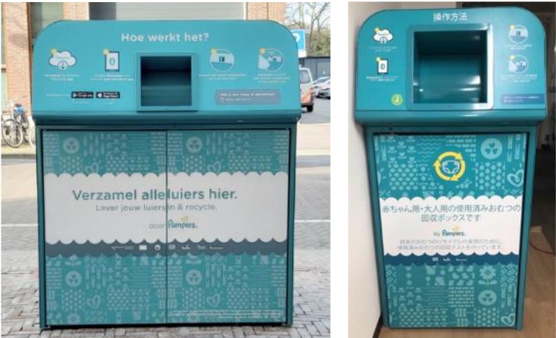 パンパース、スマホで開錠する「おむつ回収ボックス」。無料回収