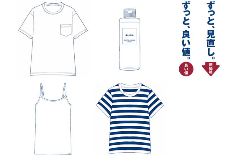 無印良品、衣料品を値下げ。Tシャツ・くつ下・ダウンベスト等
