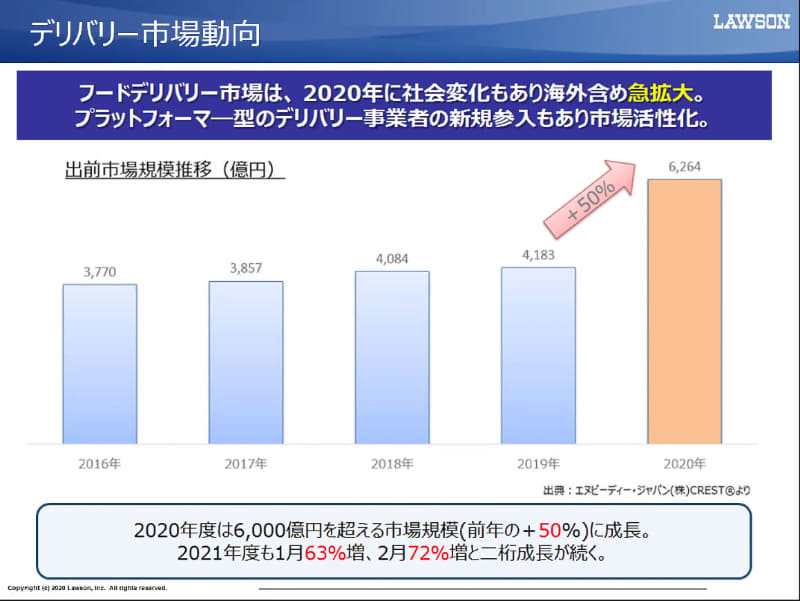 • ローソン、デリバリー5000店舗突破 売上2割超えの店舗も