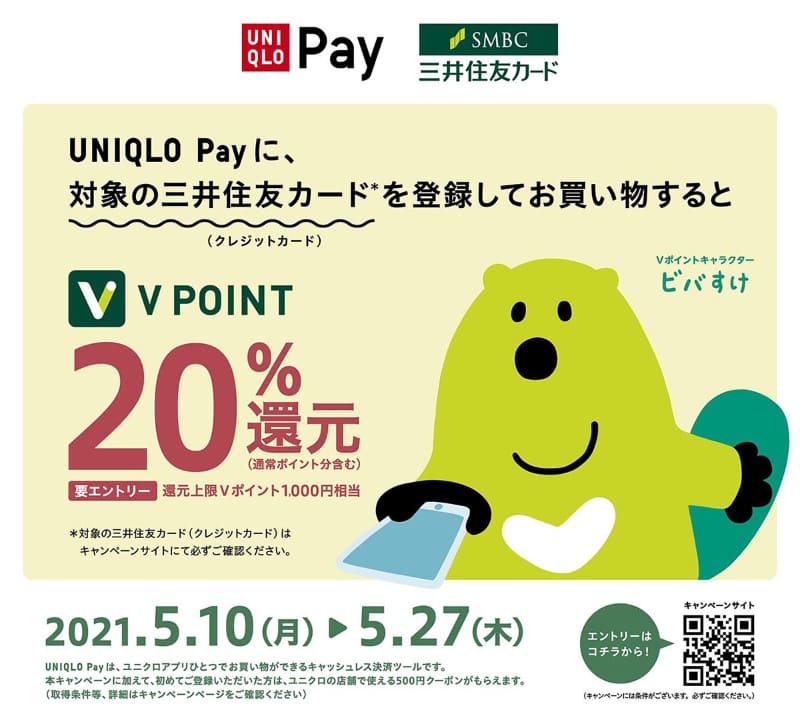 UNIQLO PayでVポイント1000円分還元。三井住友カードと三井住友銀