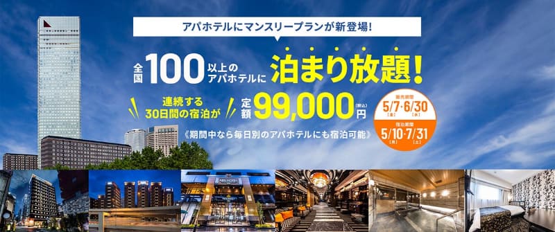 アパホテル、99000円で30日間泊まり放題。50周年企画