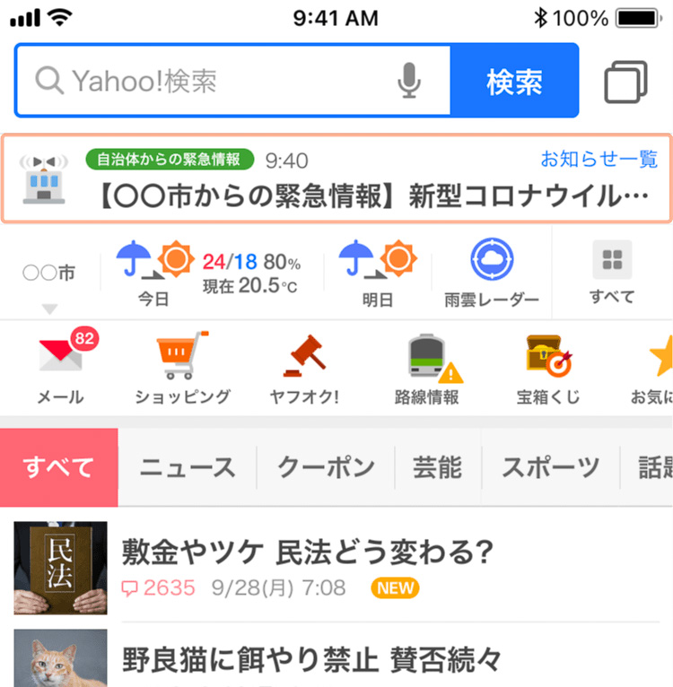 Yahoo! JAPANアプリ、自治体発信の新型コロナ情報をプッシュ通知