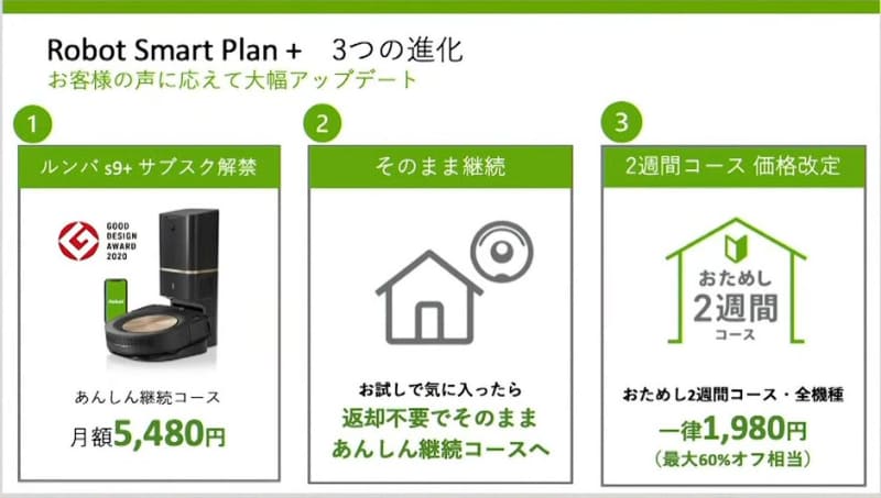 ルンバ、2週間1980円のおためしサービス(3/12)
