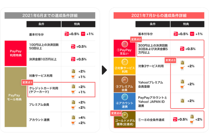 PayPayステップ、達成条件・特典変更。ゴールドメダルは終了