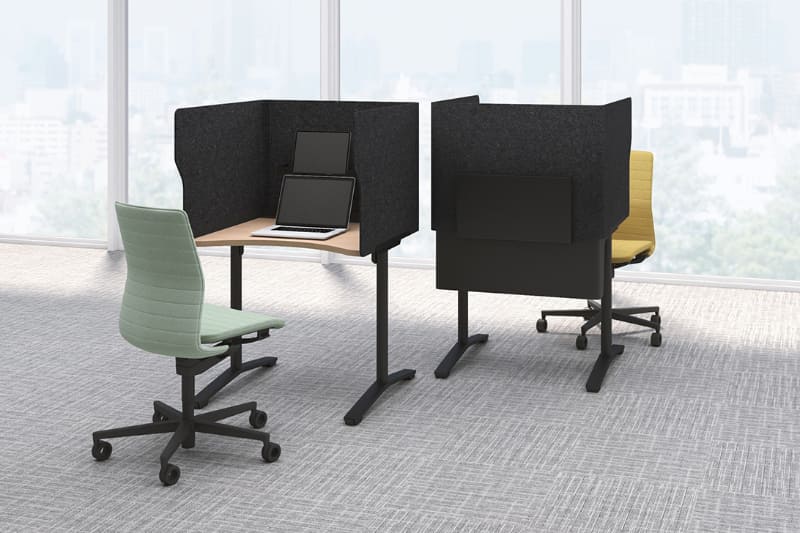 プラス、セミクローズド集中ブース。視界を遮りつつ周囲に気を配れる