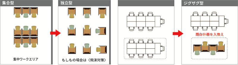 • プラス、セミクローズド集中ブース。視界を遮りつつ周囲に気を配れる