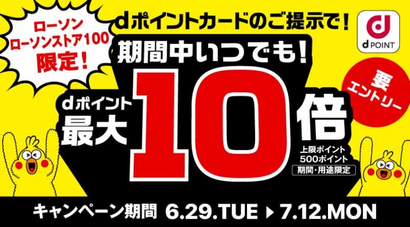 ローソンでdポイント10倍キャンペーン。7月12日まで