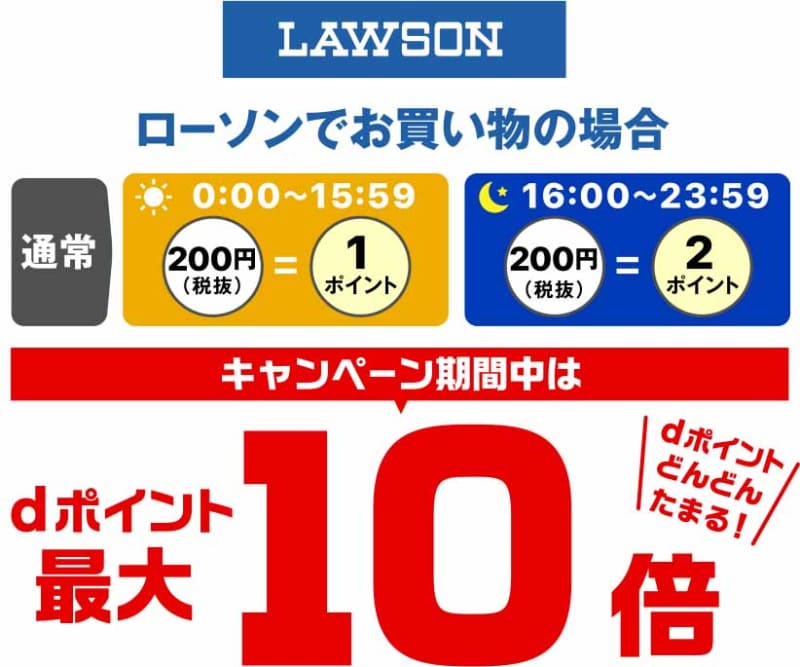 ローソンでdポイント10倍キャンペーン。7月12日まで