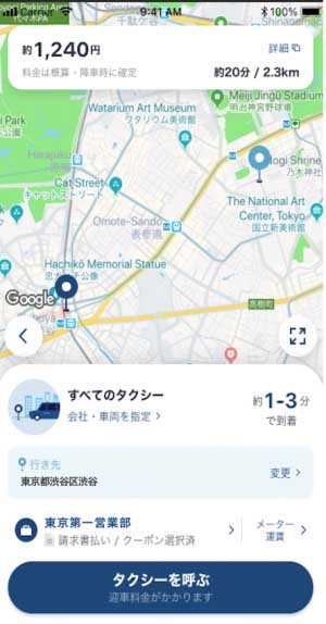 Google マップからタクシー配車。タクシーアプリ「GO」