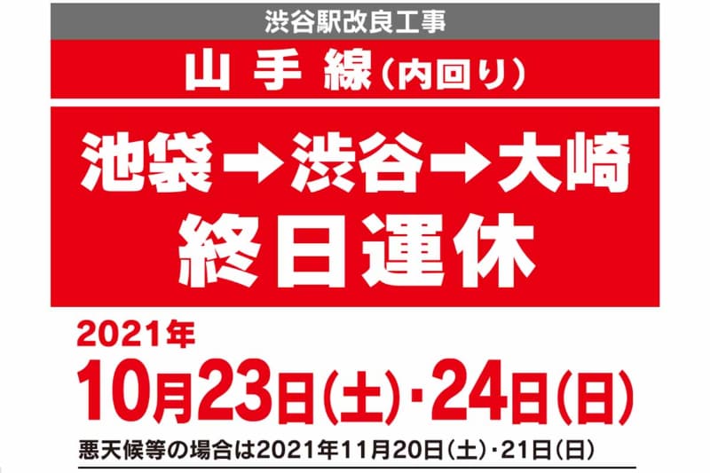 今週末は山手線内回り池袋~渋谷~大崎間終日運休。渋谷ホーム拡幅