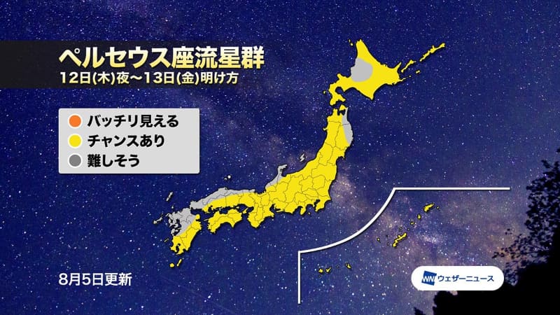 ペルセウス座流星群、13日ピーク。8年に1度の好条件も天気に不安